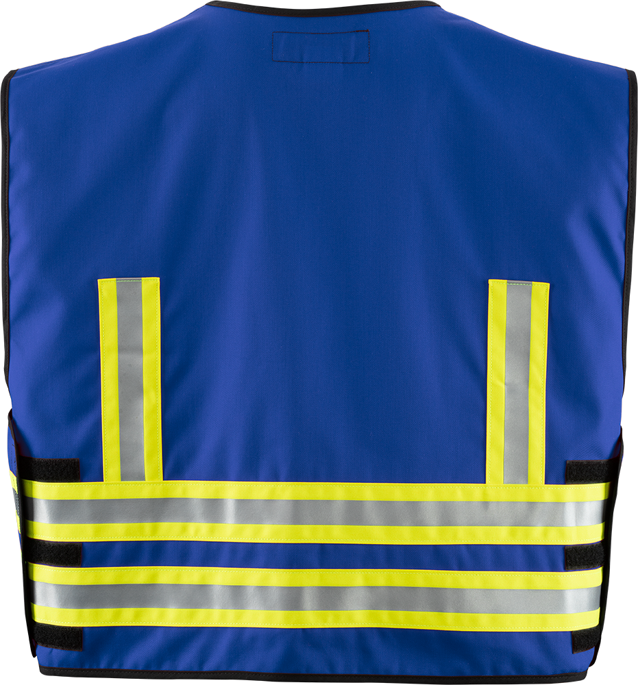 Este chaleco de mando e identificación se usa directamente sobre la chaqueta de primeros auxilios y está disponible en nueve colores. Tiene dos bolsillos para radios (lado izquierdo y derecho) así como otras características del equipo. El tamaño se puede ajustar mediante cremallera y velcro.