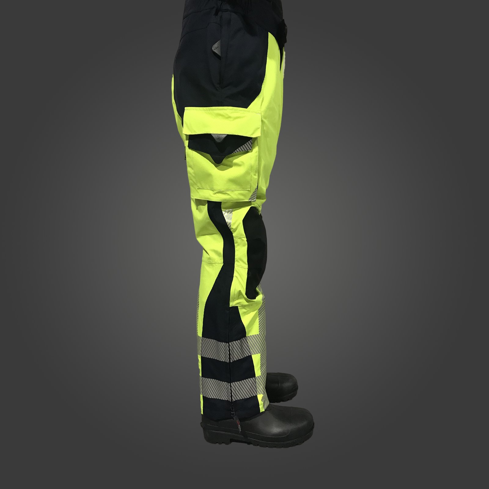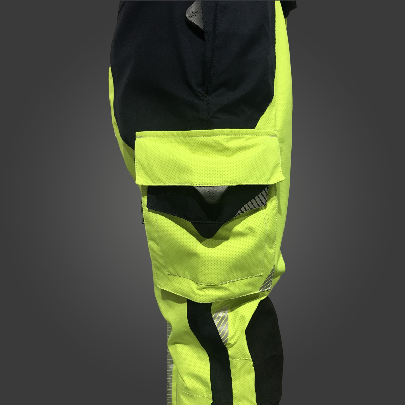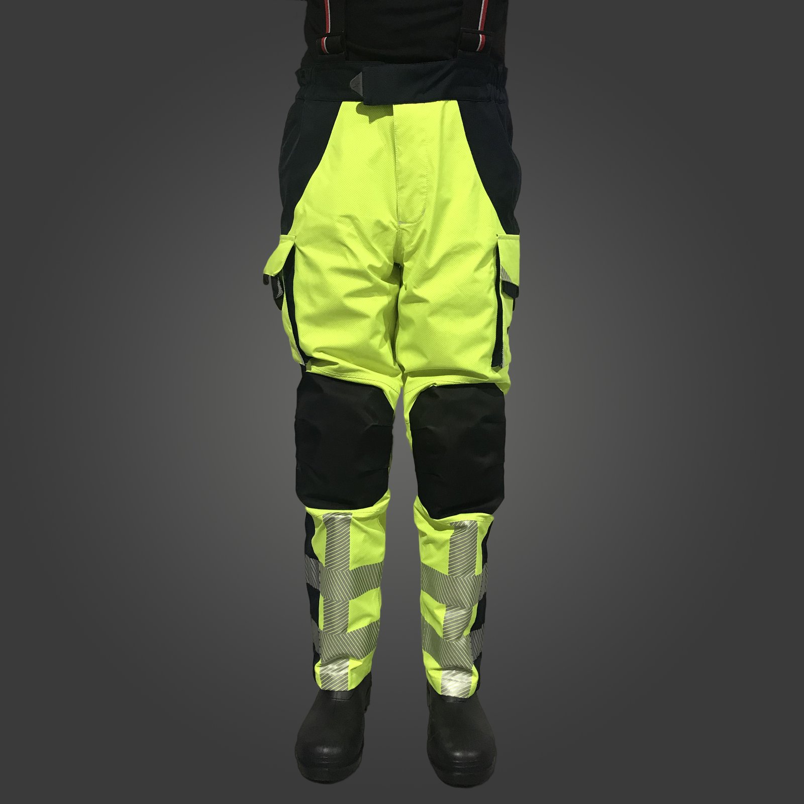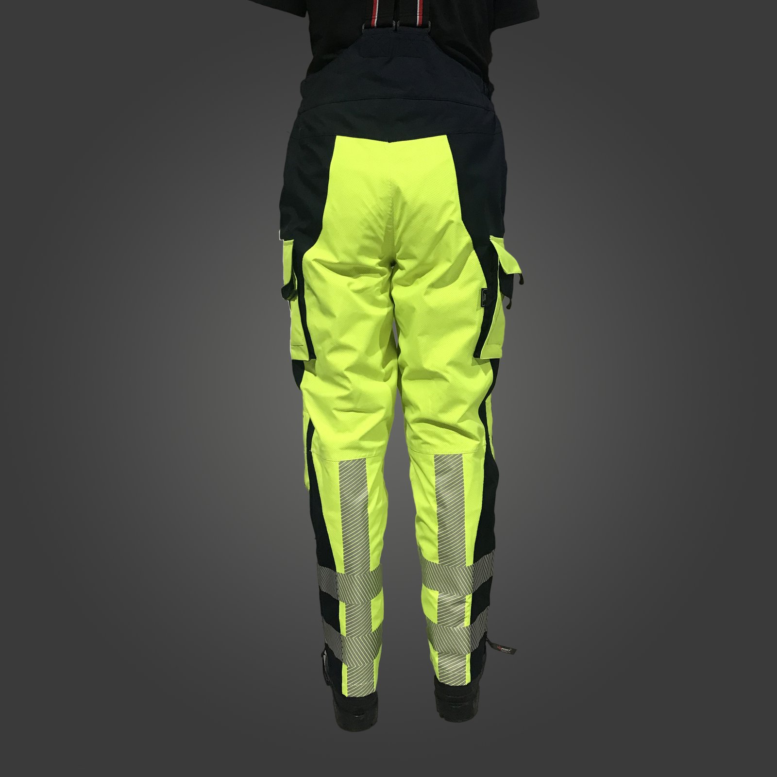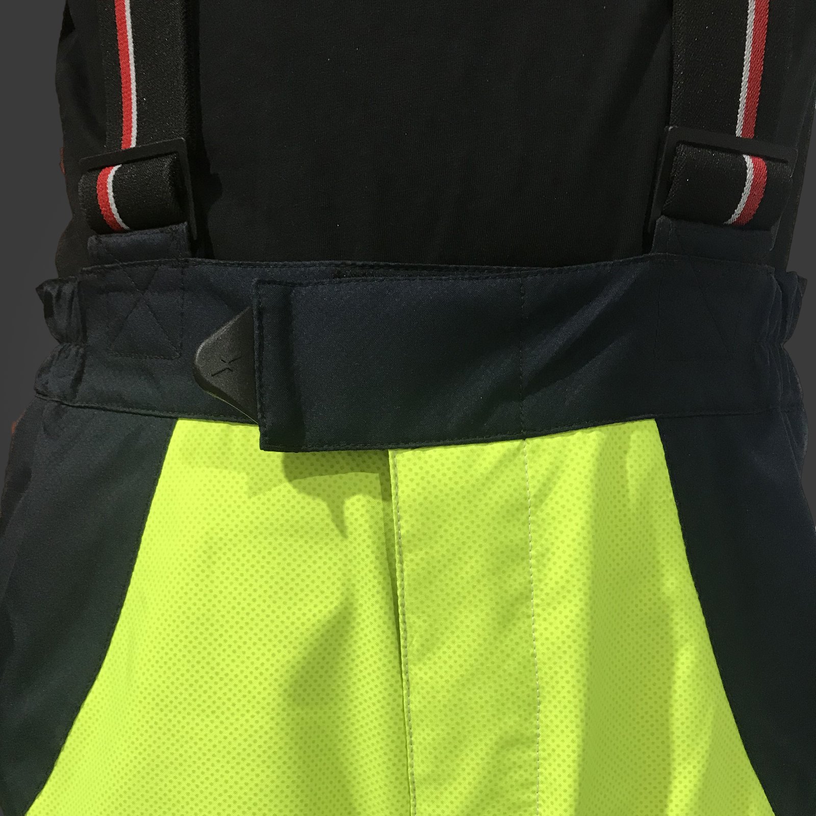 Ajuste de la cintura mediante elástico, cierre mediante velcro y cremallera, almohadillado lumbar, refuerzo en las rodillas contra la abrasión y rodilleras, bajos ajustables para cualquier bota, bolsillos laterales con doble compartimento, bolsillos laterales con velcro, tirantes de alta resistencia extraíbles y ajustables.