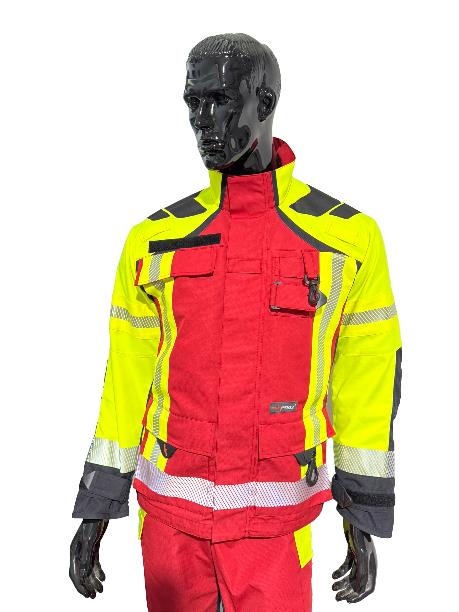 2020 Texport presenta de manera única el traje de extinción de incendios con sistema de arnes integral que cumple con la norma generalmente válida EN 469 y ha sido certificado en consecuencia.