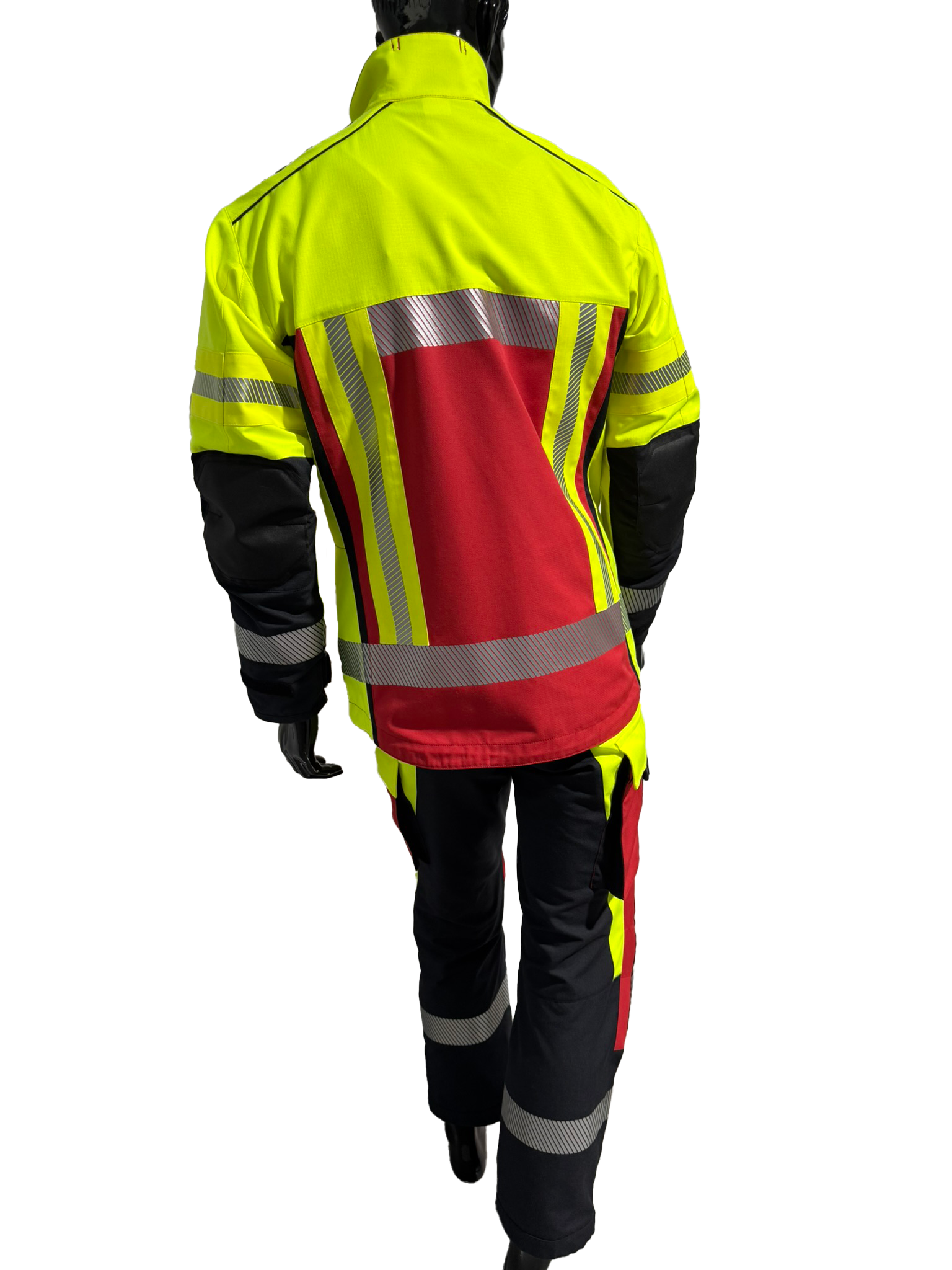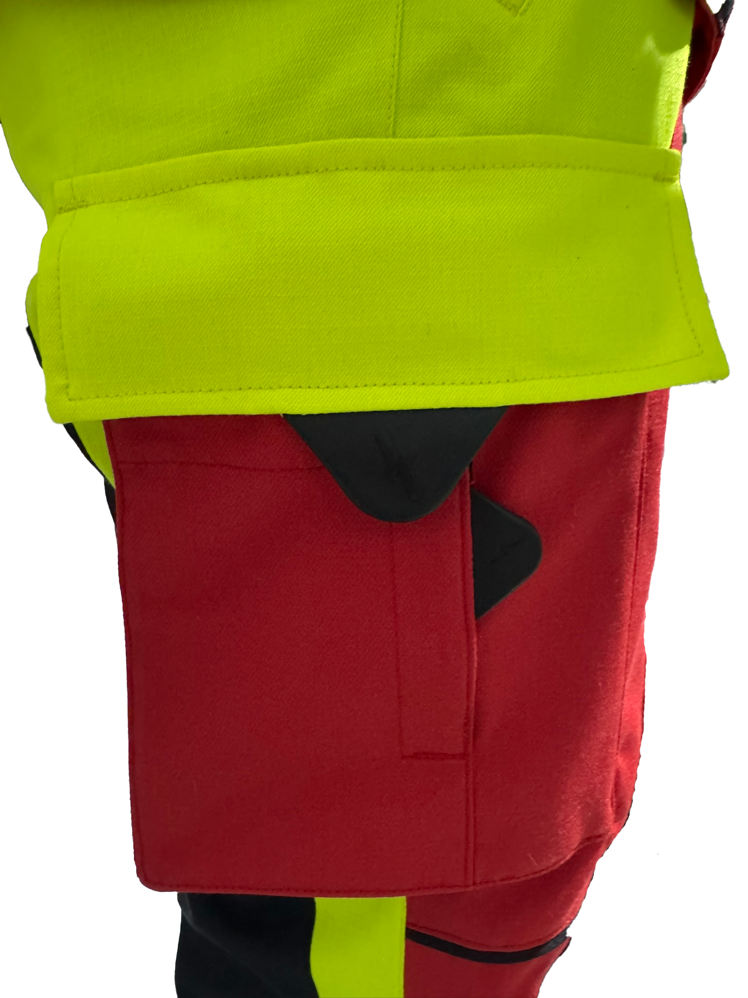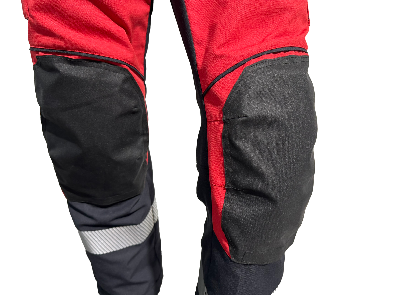 Los refuerzos homologados protegen codos y rodillas, son intercambiables y no absorbentes. La multitud de bolsillos en chaqueta y pantalón hacen de este conjunto un EPI universal para cualquier intervención forestal/técnico.