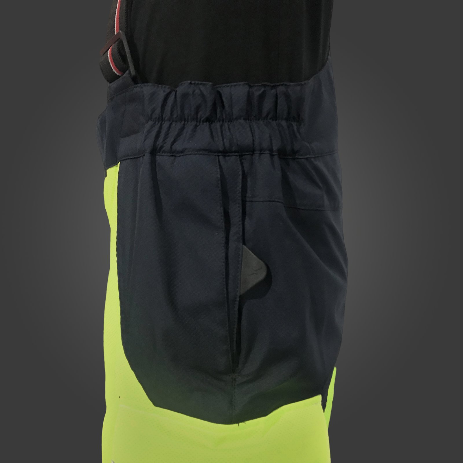 Ajuste de la cintura mediante elástico, cierre mediante velcro y cremallera, almohadillado lumbar, refuerzo en las rodillas contra la abrasión y rodilleras, bajos ajustables para cualquier bota, bolsillos laterales con doble compartimento, bolsillos laterales con velcro, tirantes de alta resistencia extraíbles y ajustables.