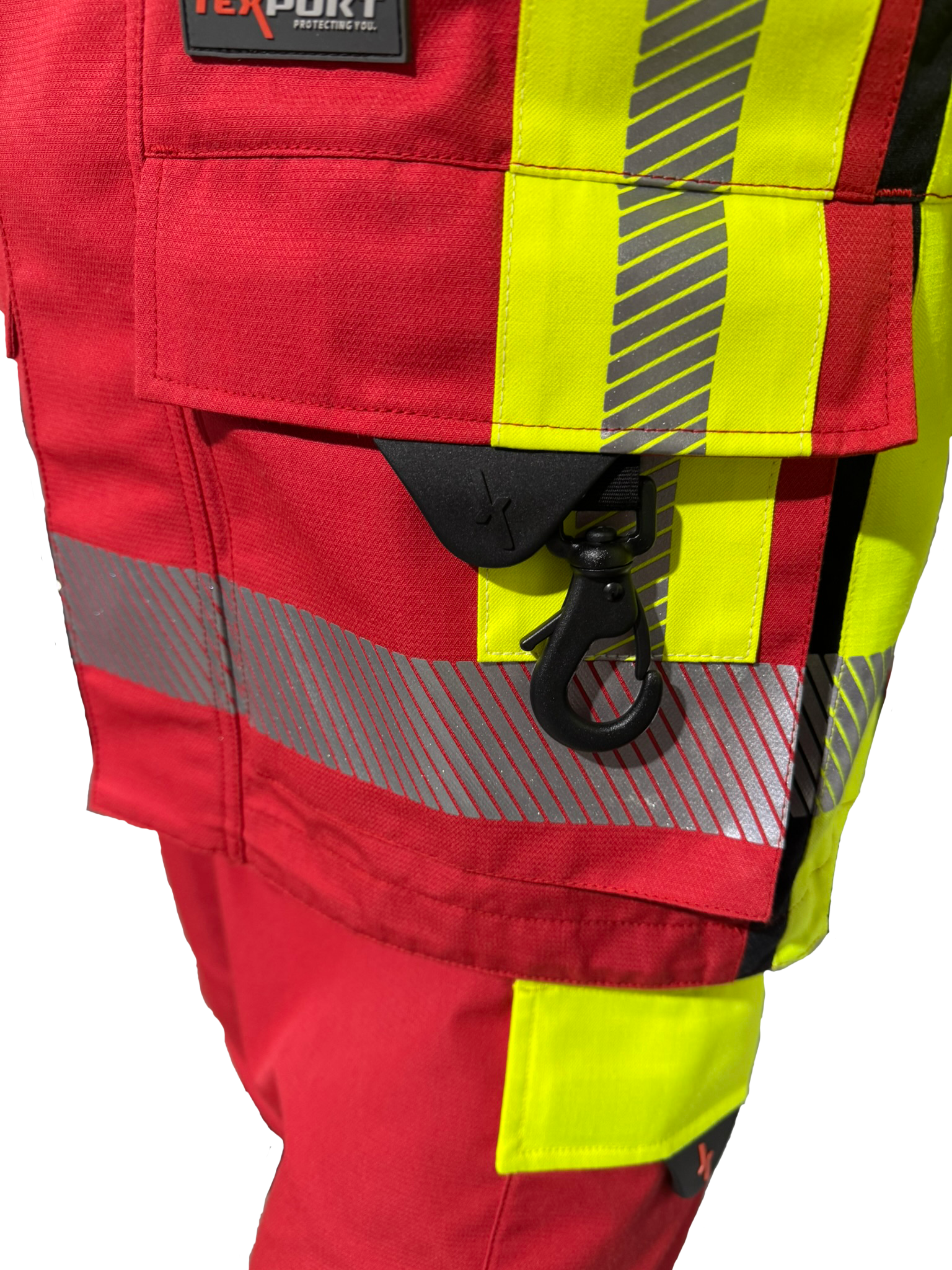 2020 Texport presenta de manera única el traje de extinción de incendios con sistema de arnes integral que cumple con la norma generalmente válida EN 469 y ha sido certificado en consecuencia.